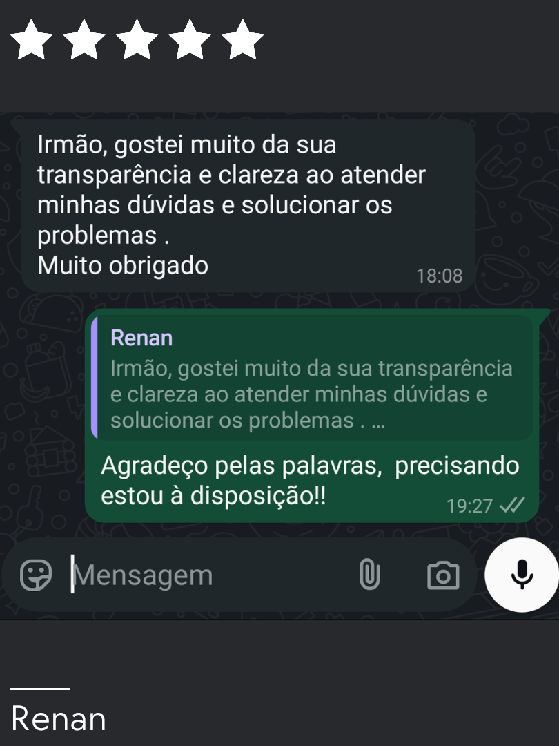 Aqui compartilho alguns depoimentos dos meus clientes. Espero que o seu também esteja entre eles em breve.